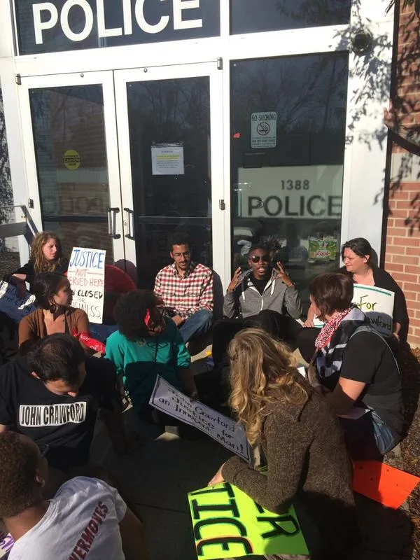 The students had occupied the lobby of the police station for two consecutive days waiting for a meeting with Beavercreek Police Chief Denis Evers. Student organizers met with Evers to discuss three demands that they had made following the widely-publicized killing of unarmed James Crawford III in the Beavercreek Walmart in August. A special grand jury failed to indict the officer who shot Crawford in the back of the arm and liver. The grand jury presentation was made by prosecutorial fixer Mark Piepmeier, selected by Attorney General Mike DeWine. DeWine is from Greene County where the killing took place.