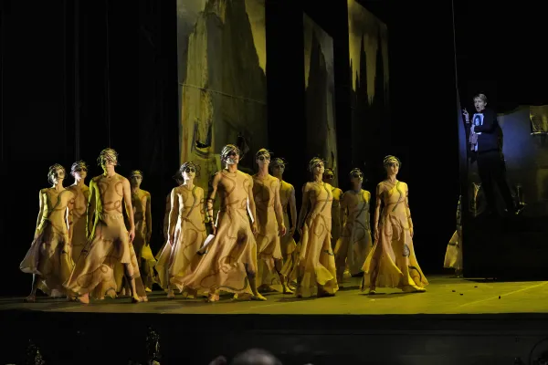 There are other changes from the 1774 version - which has had significant alterations over the centuries. The opera was actually first produced in Vienna with an Italian libretto by Raniero de’ Calzabigi in 1762 but the music and libretto were changed for the Paris iteration in 1774, with a libretto in French by Moline. Hector Berlioz got into the act in the 19th century and the rendition now onstage at the Dorothy Chandler has changed Orpheus from a musician per se into a choreographer and dance instructor, while Eurydice is the company’s moody prima ballerina and diva par excellence. As you’ll also quickly see, ancient Greece has morphed into the post-Henry Ford era.