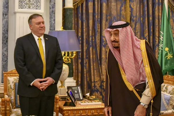 From Wikipedia Commons, Pompeo meets with criminal Saudi Rulers