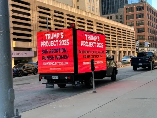 "Project 2025 advertising van in Milwaukee during 2024 RNC IMG 8525" by SecretName101 is licensed under CC BY 4.0.