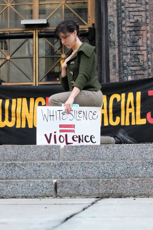 “Trump ran on a platform of ‘law and order,’ which we know is nothing but a dog whistle for violent racist policing — something he made abundantly clear throughout his campaign,” said Pearl Morgan, an organizer with Showing Up for Racial Justice (SURJ), a group that organizes white people to fight against racism. “He openly encouraged violence against protesters at his rallies, seeming to view it as entertainment,” she said.