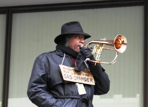 Kyle Kerley, who works as a nurse in a free clinic, pointed out that both major political parties have been complicit in attacks on the environment, education, and the working class. “The 1986 tax cut had bipartisan support under Regan,” he said. “Then Clinton came in as the small government Democrat who cut welfare programs and increased prison sentences, leading to what we have today with mass incarceration. It doesn’t matter whether we have a Republican or Democratic President. We live in a Democratically-held city, and our schools are under attack. Section 8 housing is under attack, sold off to the highest corporate bidder.