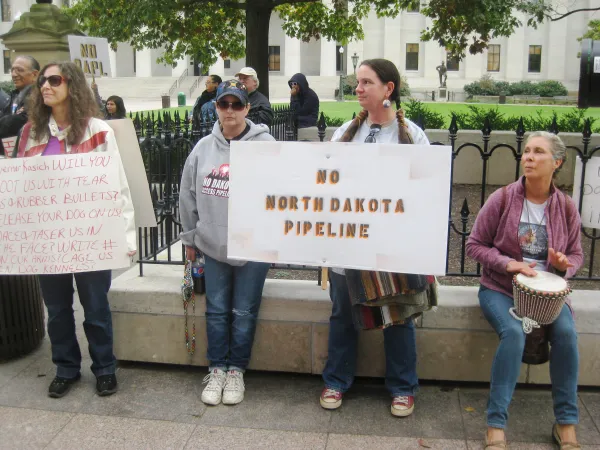 “I don’t want our government to provide protection for corporate profits in another state,” said Kim McCarthy of Dayton. “The pipeline must be stopped. They’re turning their back on treaties they made with the Native Americans. It’s enough. The time has come for the people to demand that our government represent us instead of corporations.”