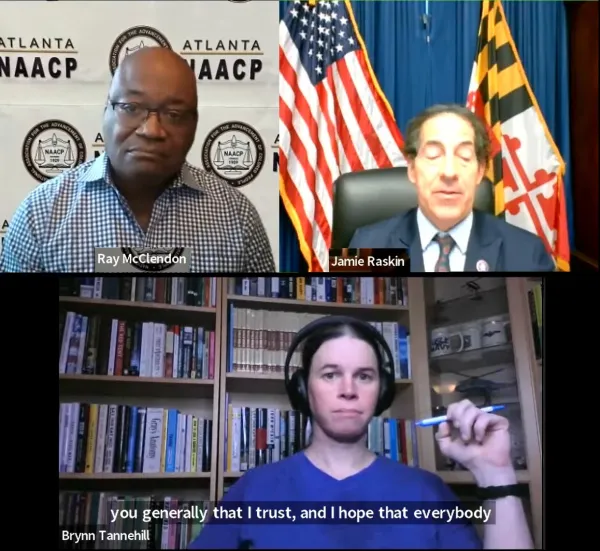 JIM GARRISON of the Ubiquity Institute asks why Donald Trump is not yet in prison, to which Rep. Raskin responds with a strong second to that notion.