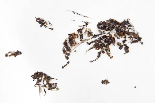 The Honey Bee series was made when America was realizing the increasing deaths of the honey bee population and colony collapse. Here almost as an homage, he uses dead honey bees to create the pigment to print images of the bees.