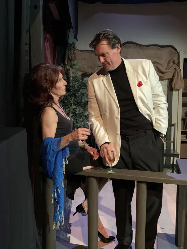 In real life Fallaci was a decade older than her Greek lover - she was in her forties, he in his thirties. But this doesn’t enter into the picture of the fictionalized portrait Manus paints (although it is pretty groovy to see more middle-aged lovers depicted). Nor is Panagoulis’ reported abuse that caused Fallaci to lose the baby she was carrying alluded to. By changing the names of his dramatis personae, Manus’ fictionalization is a convenient plot device that enables his play to sidestep unpleasant facts and take poetic license.