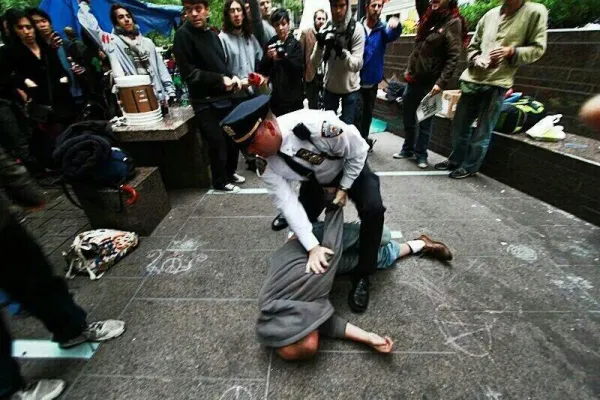 The LAPD was more reactive than the NYPD, actually speaking to and visiting one activist who posted nearly a dozen pictures on Twitter. While attempting to at least appear to engage in community outreach, what the LAPD did was construed as a threat and reported on Twitter: @LACANetwork #myLAPD just showed up for a friendly "happened to be in the neighborhood" visit. Considering that police have been known to shoot unarmed people in the back and leave them to bleed to death in public in broad daylight without much media scrutiny, the activist's life might have been saved by Twitter. The man below was shot in California for allegedly not paying bus fare: