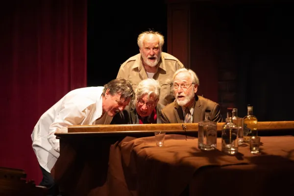Pownall’s two-act production appears to be set in Zhdanov’s Kremlin office (by scenic designer Peter Hickok) during the crucial Moscow Composers’ Conference of Soviet musicians in 1948. The conceit of Stalin’s Master Class is a vodka-fueled all-night session between the two politicians and two composers that Pownall conjured up. Like some productions about Stalin, such as 1991’s The Inner Circle, 2017’s The Death of Stalin (released during the Russian Revolution’s centennial), and the current Showtime series A Gentleman in Moscow, Stalin’s Master Class contains a heavy dose of black comedy.