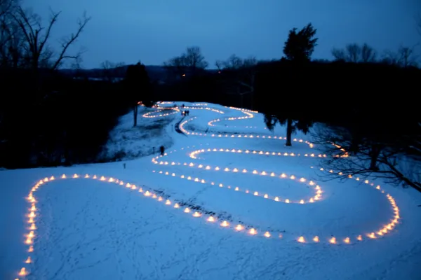 During the winter solstice celebration, says Wilson, more than 600 candles illuminated the outline of the Serpent and candles are placed in the center of the egg (or sun), as well. “A handful of people are picked to walk across the mound and it’s done in a respectful way. Word spread because we took pictures and it was gorgeous.”