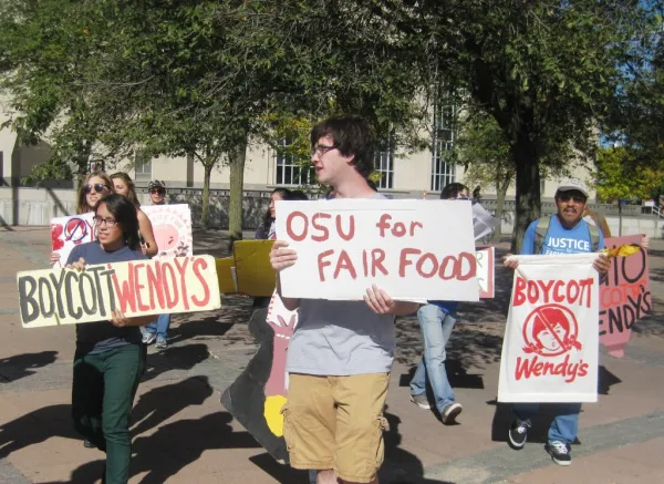 Two years ago OSU administrators signed an agreement with the SFA, promising to end its contract with Wendy’s if the fast food chain did not make a verifiable commitment to fair labor practices in its Florida tomato supply chain. This would have meant joining the Coalition of Immokalee Workers’ Fair Food Program, which includes a commitment to source its produce only from farms that provide fair pay and safe working conditions to their workers. The program also includes a zero-tolerance policy for slave labor and sexual harassment.