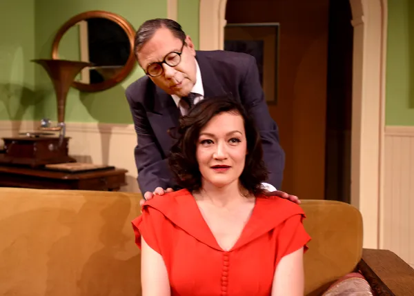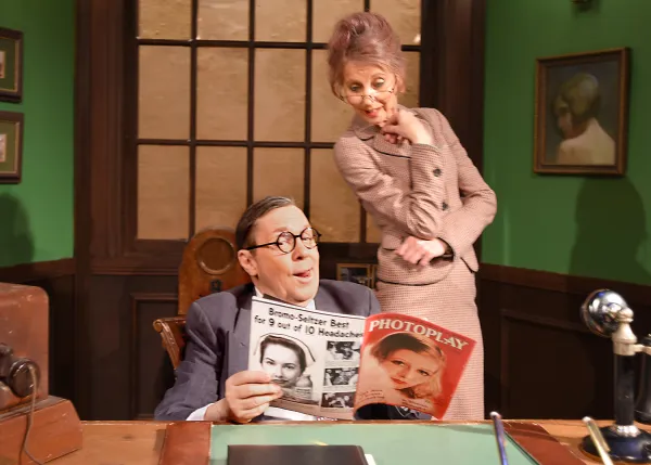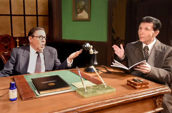 The standout in the cast, directed by Melanie MacQueen, is Jeffrey Winner as L.B. With his mannerisms and quirks, Winner builds a hilarious character who is always as welcome a presence onstage as his character is unwelcome intruding in Haines’ private life. Winner’s winning performance steals every scene he’s in like a kleptomaniac set loose at Costco, as he holds forth in his office at the MGM lot (which doubles as Haines’ home), concocted by set designer Jeff G. Rack. Winner successfully and enjoyably draws upon his extensive stage and big/little screen background that includes Married with Children and Forrest Gump, and is simply a joy to behold whenever he treads the boards.