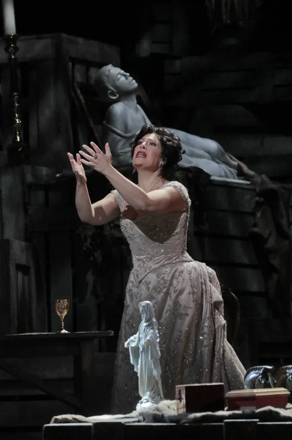 There, the painter Mario Cavaradossi (Florida tenor Russell Thomas) is working on a painting of Mary Magdalene. Mario agrees to hide Cesare, who had been imprisoned by the notorious Scarpia (portrayed April 22, 27 and 30 by Italian baritone Ambrogio Maestri, on May 2, 5 and 7 by Nawlins bass-baritone Greer Grimsely and on May 13 by South Korean baritone Kihun Yoon), a relentless law and order bloodhound who is to opera what Inspector Javert, of Victor Hugo’s Les Miserables (Les Mis), is to literature (and Broadway). Under the guise of worshipping the famous Floria goes to the church to visit her lover Mario. When Scarpia enters, she becomes ensnared in his manhunt for the escapee.
