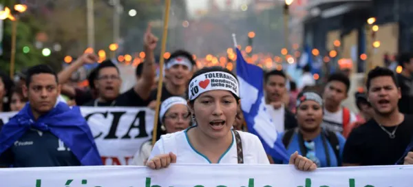 Thousands march in a demonstration against Honduran president Juan Orlando. (photo: Orlando Sierra/AFP)