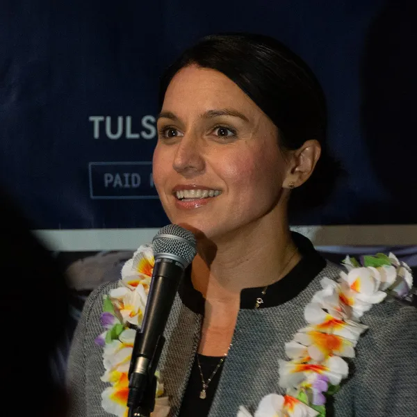 Tulsi Gabbard @ Concord, NH (20190216) Source: https://www.flickr.com/photos/37996583933@N01/46400897864/ Author: marcn Lic. CC
