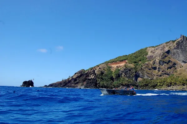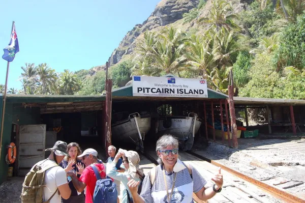 Bobbing and weaving, the 10-minute or so ride to the dock is like a Wild West show, but somehow, we manage to arrive safely, and are met by waiting Aranui seamen who lasso a rope to the pier and help us out of the roller-coaster-like barge back onto terra firma. Nearby is a wooden, open-air boathouse wherein two whaleboats are sheltered, topped by an outdated white sign emblazoned (prior to Brexit) with the European Union, UK and Pitcairn flags, and the words: “Welcome to Bounty Bay.” Relieved that I had somehow survived the twelfth task of Hercules, as I step onto the soil of Pitcairn I say, to nobody in particular, in the immortal words attributed to General Blackjack Pershing: “Lafayette, I am here!”