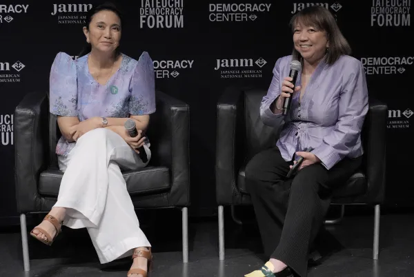 (L_R) Leni Robredo. former Vice President of the Philippines, and Director Ramona S. Diaz at the LA Premiere of AND SO IT BEGINS. Photo courtesy of Visual Communications