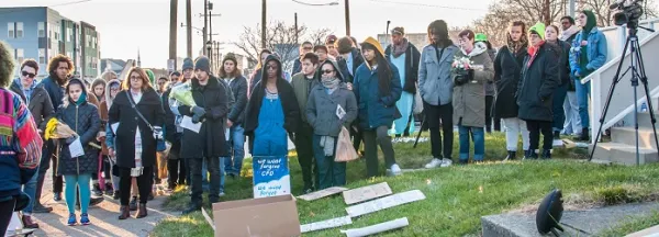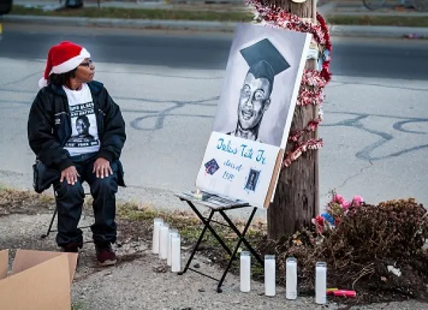 Over 60 family, friends, and community members gathered December 7th at a corner of Mount Vernon Avenue and Champion Avenue in a vigil to remember and grieve for Julius Tate, Jr., killed by Eric Richards of the Columbus Police Department. The street corner is near the spot where 16-year-old Julius Tate, suspected of robbery, was killed in a sting operation exactly one year before.