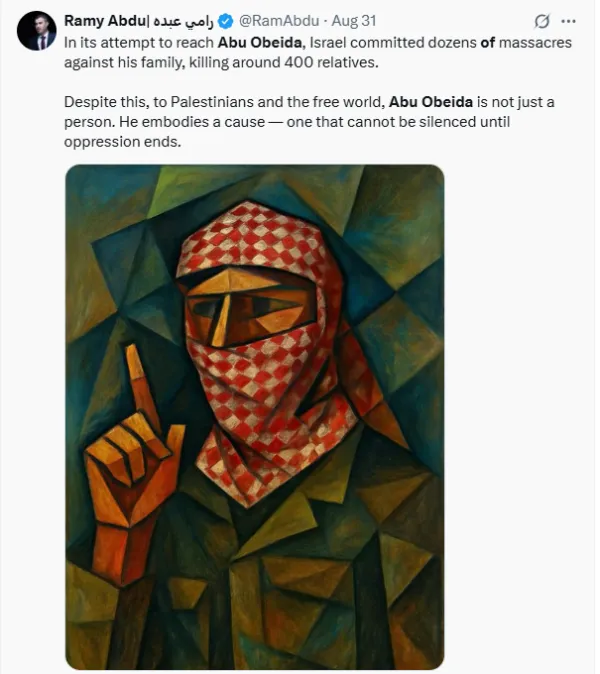 You celebrate his death? Know this: men like Abu Obeida do not die — they become legends, their names echo in millions of hearts.