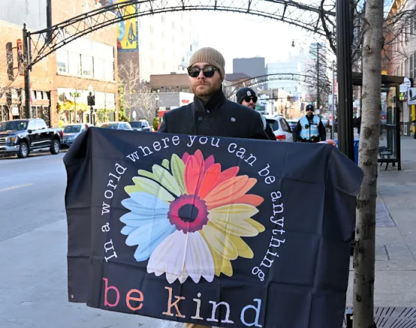 "We need to take this horrible event and turn it around into something that can be really positive for a lot of people," said Kathleen Minor, event organizer. About three dozen community members gathered in the Short North, carrying an array of banners that included the Pride flag, and popular slogans such as “Be The Change.”