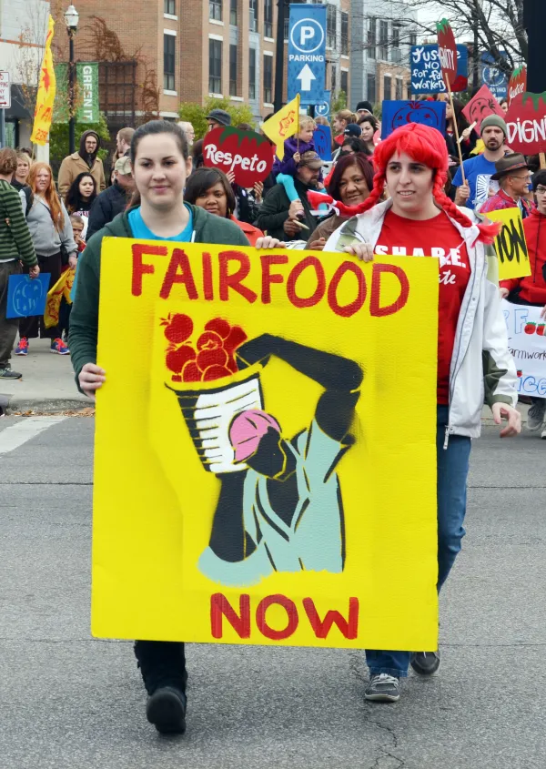 The Columbus protest coincided with Wendy’s celebration of “Founder’s Week” which was November 10-17, 2013. The company was celebrating the core values of their founder, Dave Thomas. Many protestors held signs urging Wendy’s to celebrate Thomas’ values by committing to the Fair Food Program and agreeing to pay one more penny per pound of tomatoes to give Immokalee workers their first wage increase in more than thirty years.