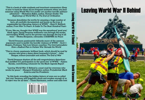 I have to perform my WWII magic trick fairly early in the lecture, because if I don’t, if I talk too long about defunding militarism and investing in peace, then too many people will have already interrupted me with questions like “What about Hitler?” or “What about WWII?” It never fails. I talk about the unjustifiability of war, or the desirability of ridding the world of wars and war budgets, and somebody brings up WWII as a counter-argument.