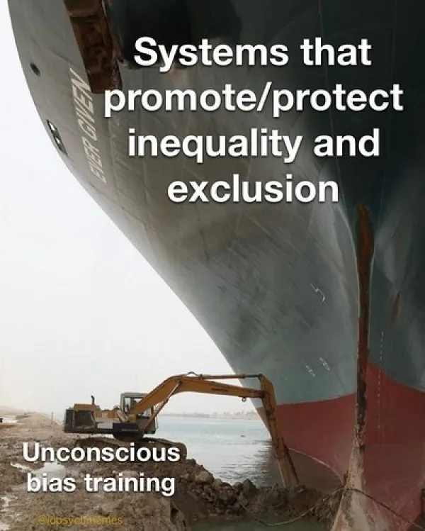 "There is not a lot of string evidence that unconscious (or implicit) bias training is effective. #Diversity #Equity #Inclusion #OHPsych #IOPsych #iopsychmemes #psychology #psychologymemes #psychmemes #APpsych (rerun from when that ship got stuck in the Su" by iopsychmemes is licensed under CC BY-NC 2.0.