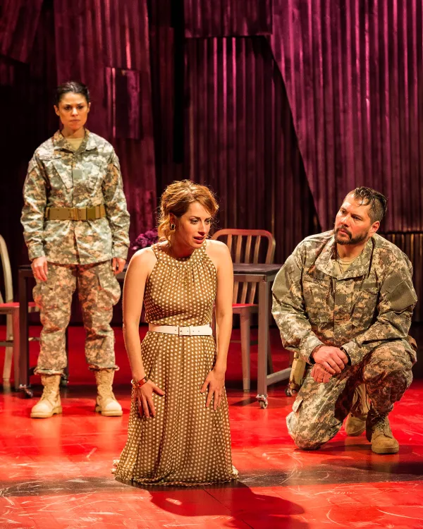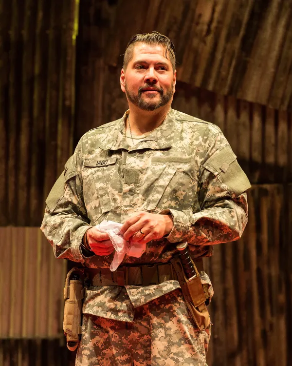 But the Bard’s interracial angle plus the play’s power elite milieu elevates Othello to the ranks of Shakespeare’s 38 plays that are full of social commentary. And the modern dress plus non-traditional gender and ethnic casting components in ANW’s production - reportedly award-winning director Jessica Kubzansky’s stroke of genius - adds a whole new 21st century dimension to this drama penned in 1604. The dramatis personae who belong to the armed forces wear contemporary-looking camouflage and dress uniforms emblazoned with “fruit salad” medals, ribbons, etc., while civilians, including Venice’s officials, are garbed in 2019 plain clothes (all courtesy of costume designer Angela Balogh Calin).