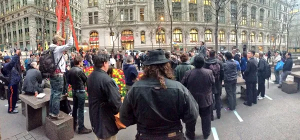 An emergency protest was announced for 6pm the same day at Zuccotti Park via Twitter. At the time of this writing, hundreds of supporters had shown up in solidarity. At least one other Solidarity rally was announced in Denver. Protestors in New York listened to the defense team talk about the next steps. Some protestors tweeted “Bring the tents” vowing to re-occupy the park while at press time several dozen had marched on the court building at 100 Center Street in Lower Manhattan.