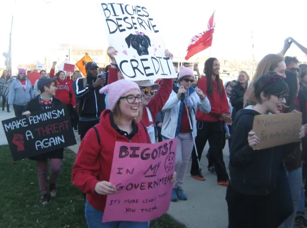 “I’m a Marxist feminist, like Angela Davis and Rosa Luxemburg,” said Emily Shaw of the International Socialist Organization.