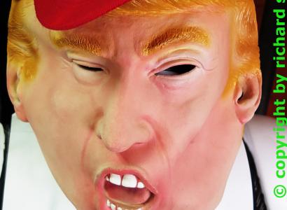 Guy dressed as superhero with star on chest and big A on forehead mask standing against stormy sky saying in a word bubble "Hail Hydra"