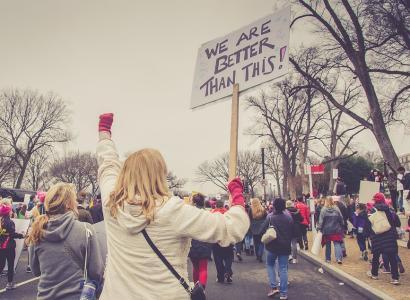Woman holding a sign saying Release Them Now
